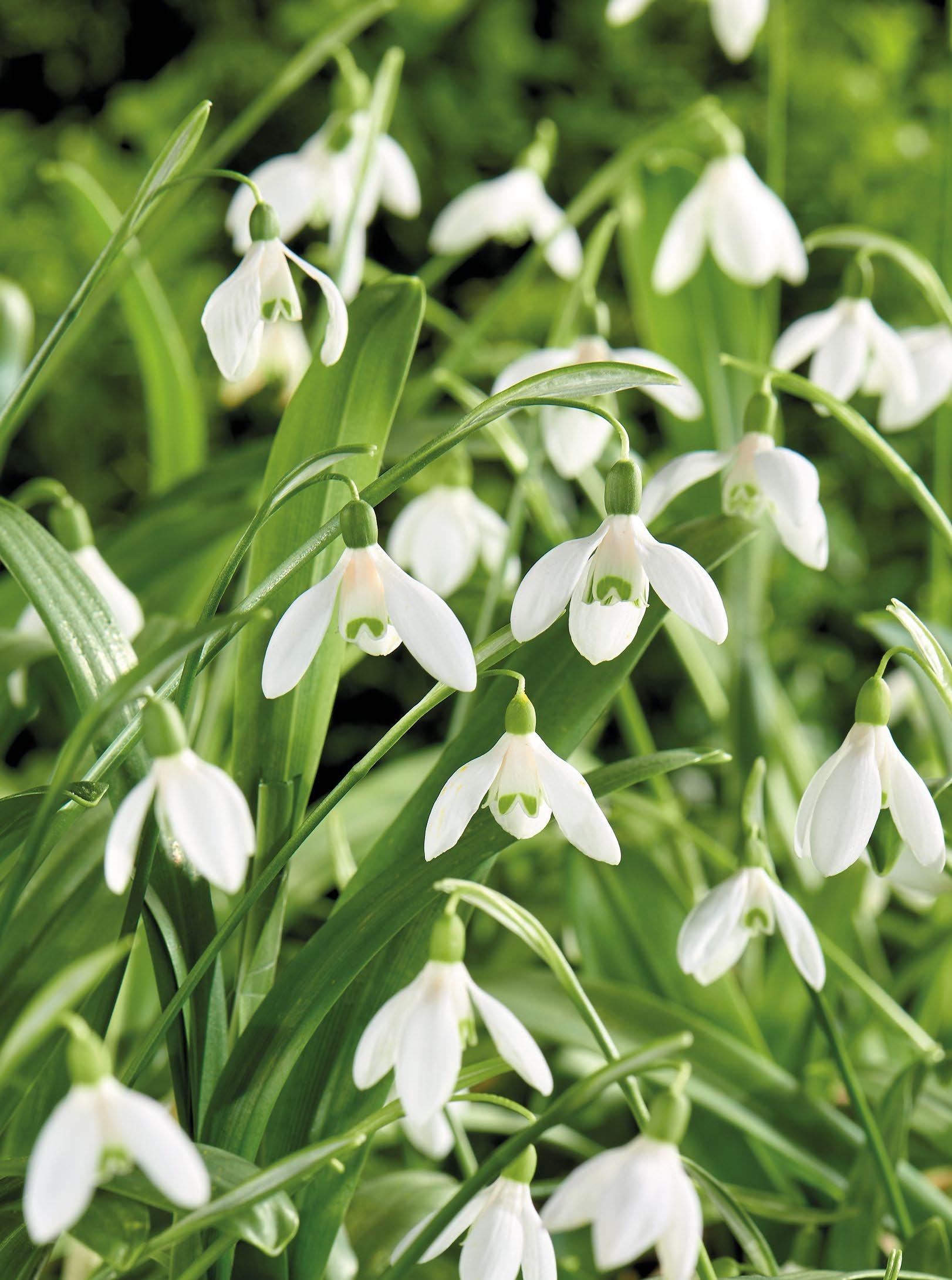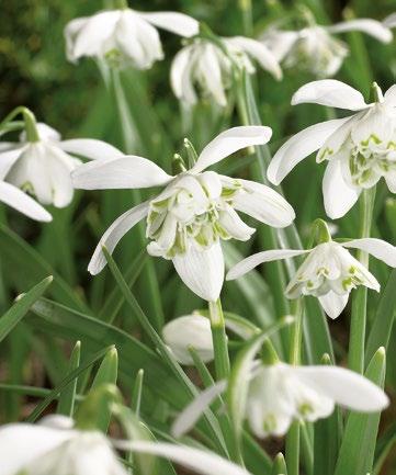 Eleganta vita klockor med gröna kronblad. Perfekt för fuktiga rabatter och naturliga planteringar. Anses vara mindre smaklig för rådjur, hare, kanin och sork.