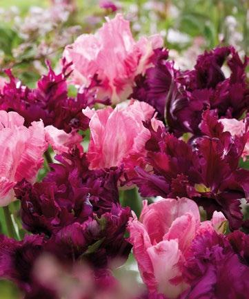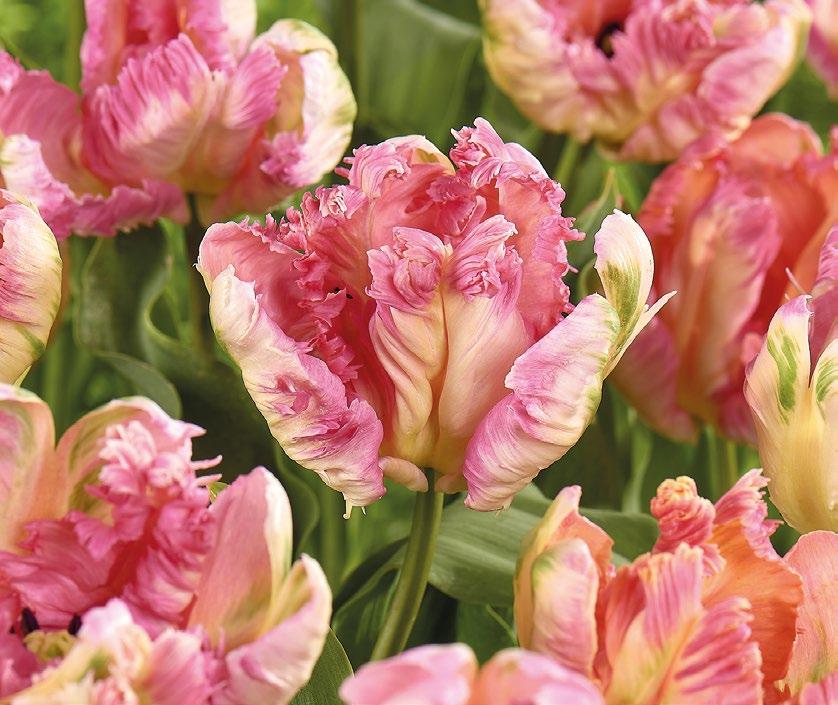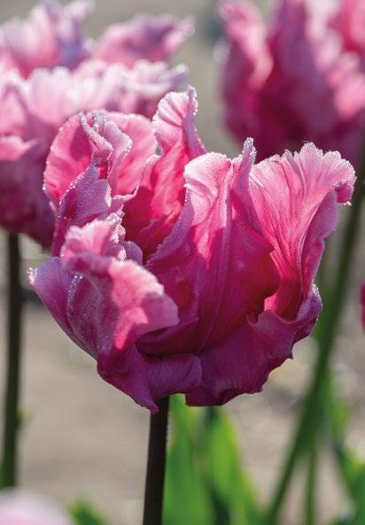 Rosa papegojtulpan med volangprydda, exotiska kronblad. En dramatisk färgvariation för vårens eleganta rabatter.