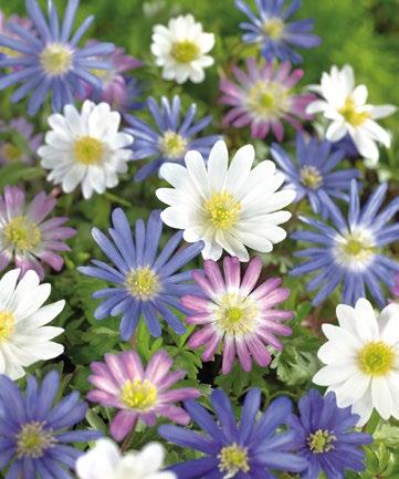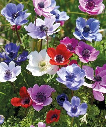 Anemone Mixed är en livlig blandning av tidigt blommande anemoner i nyanser av blått, rosa och vitt. Denna kompakta och pålitliga blandning ger vårplanteringarna ett fräscht och naturligt utseende.