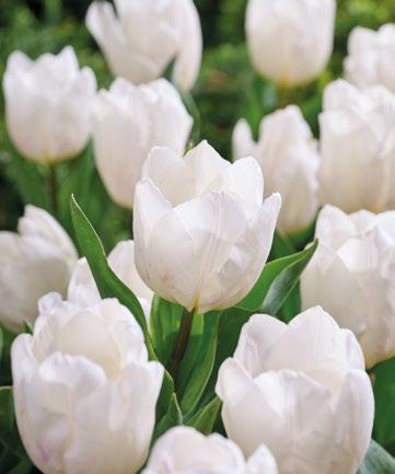 Tulpanen ”White Flag” är en fin Triumph-tulpan med rena vita blommor som tillför fräschör och kontrast i vårrabatten. Den är pålitlig, stark och passar fint med klarare tulpanfärger.