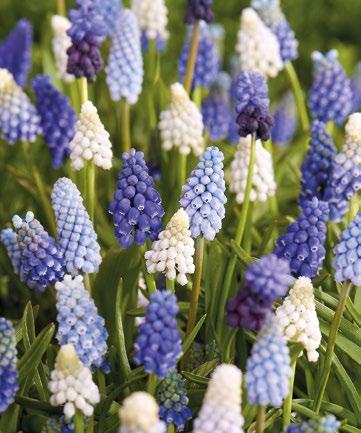 En strålande blandning av pärlhyacinter i fylliga blå toner. Perfekt för rabatter, krukor och plantering i under buskar och träd.