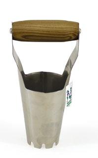 Fast lökjärn av rostfritt stål och med handtag av ask. Ett praktiskt verktyg som underlättar vid lökplanteringen.