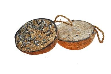 Runsaasti energiaa sisältävää linnunruokaa, valmis ripustettavaksi. Sis. talia, maapähkinöitä ja jauhomatoja. 100% luonnontuote, kompostoitava naru ja pohjalevy kookoksesta. 350g 2318 (32)