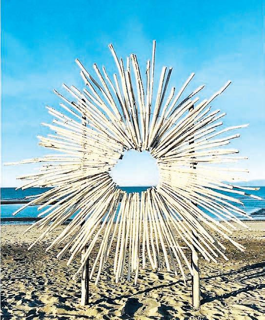 Walking down the sandspit on a daily basis during lockdown, Jamie would collect driftwood each time and cut to size for his evolving sculpture.