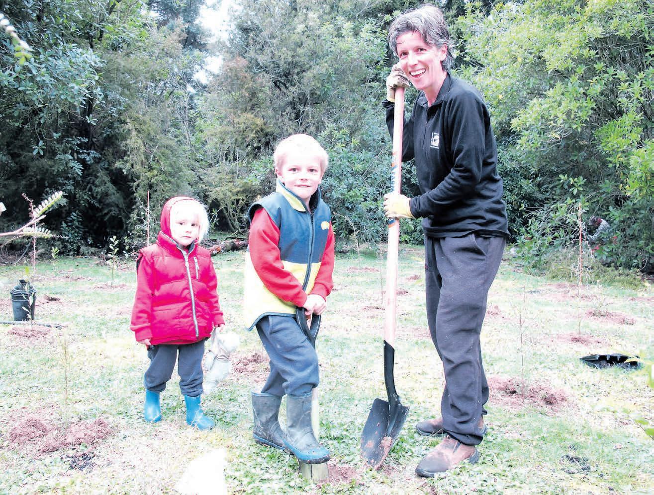 Members of the Keep Motueka Beautiful group braved the chilly temperature on Saturday morning to plant 500 native trees in Motueka’s Thorp Bush.