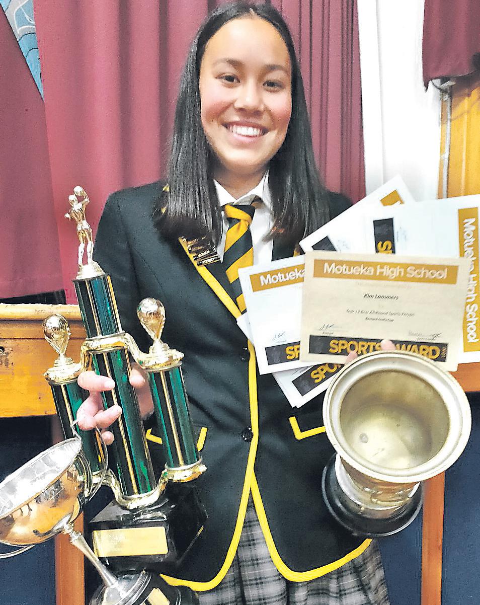 Kim’s achievements are: Captain of Senior A netball Team, most committed MHS Senior A netball player, Nelson Netball’s most valuable secondary school player, U18 Nelson Bays netball representative and netball coach of a junior team. She was the captain of the MHS mixed touch team at the Tasman & South Island competitions, most improved female touch player, MHS Senior Girls swimming champion and a member of the Sports Committee. Well done Kim.