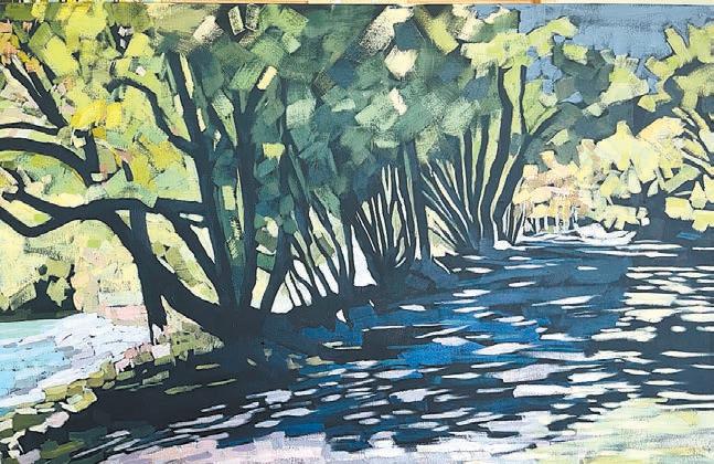 water flowing over sand or mud, leaving cracks when dry. She has a Diploma in Fine Arts and a Teaching Diploma.