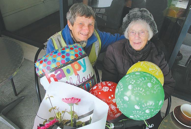 Win Tombs (right) with friend, Sarah, celebrates her birthday at Motueka’s Red Beret Café. Win says she was being “thoroughly” spoiled by café owner, Maggie. “Every day Maggie looks after me,” says the sprightly 92-year-old. Win’s birthday was kicked off with a phone call from family just after midnight. “They’re naughty like that!” she laughs. After enjoying morning celebrations at the Red Beret Win was having a day out with her daughter, where a surprise awaited.