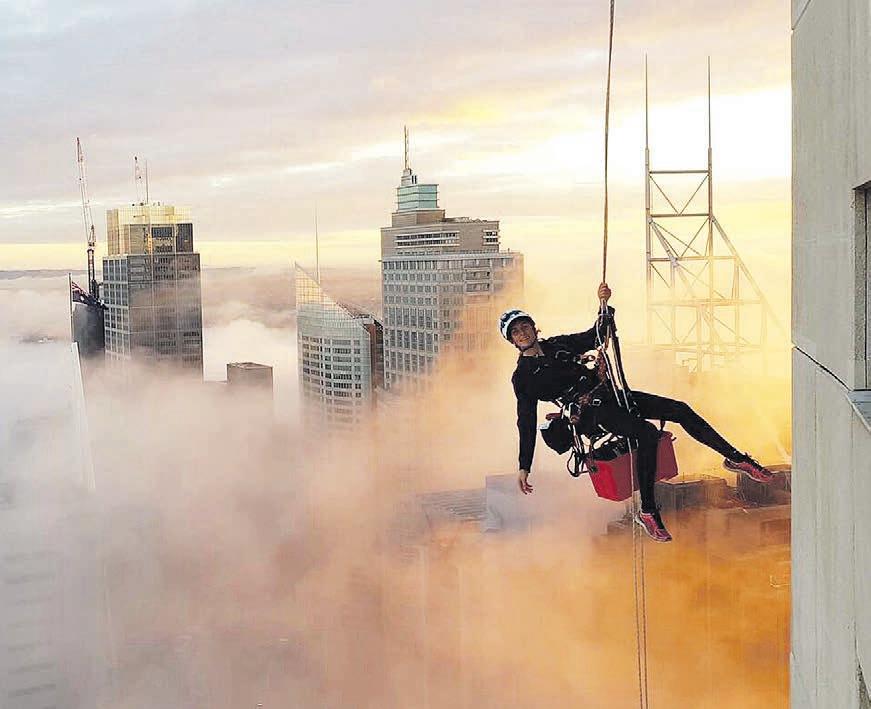 Since September last year Kirsten has been employed by Sky5 as a rope access technician cleaning the windows of high-rise buildings in Australia’s most populous city, giving many an office worker a surprise to see her outside their window.