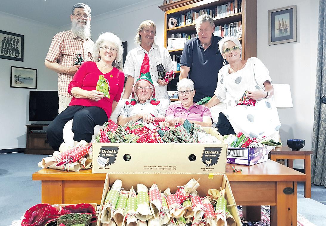 Santa’s Helpers – Back from left, Stan Sivak, Graeme Walker and Pete Cresswell. Front, Annette Sivak, Pete Arnott, Pat Moses and Trindi Walker.