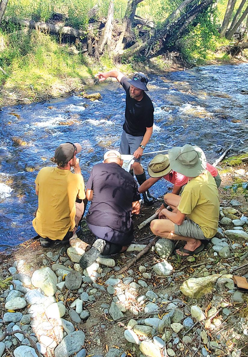 More local residents are becoming citizen scientists and learning how to monitor the health of their streams using SHMAK – Stream Health Monitoring Assessment Kit. Two separate training days were held recently at Pokororo Hall, run by Tasman Bay Guardians and Motueka Catchment Collective. Testing was done at the confluence of Motueka and Graham Rivers. While water quality testing is carried out on our major rivers by Tasman District Council, the nutrients, E Coli, nitrogen and sediment in those rivers can come from the smaller streams and drains so monitoring their health is as important. Pictured is