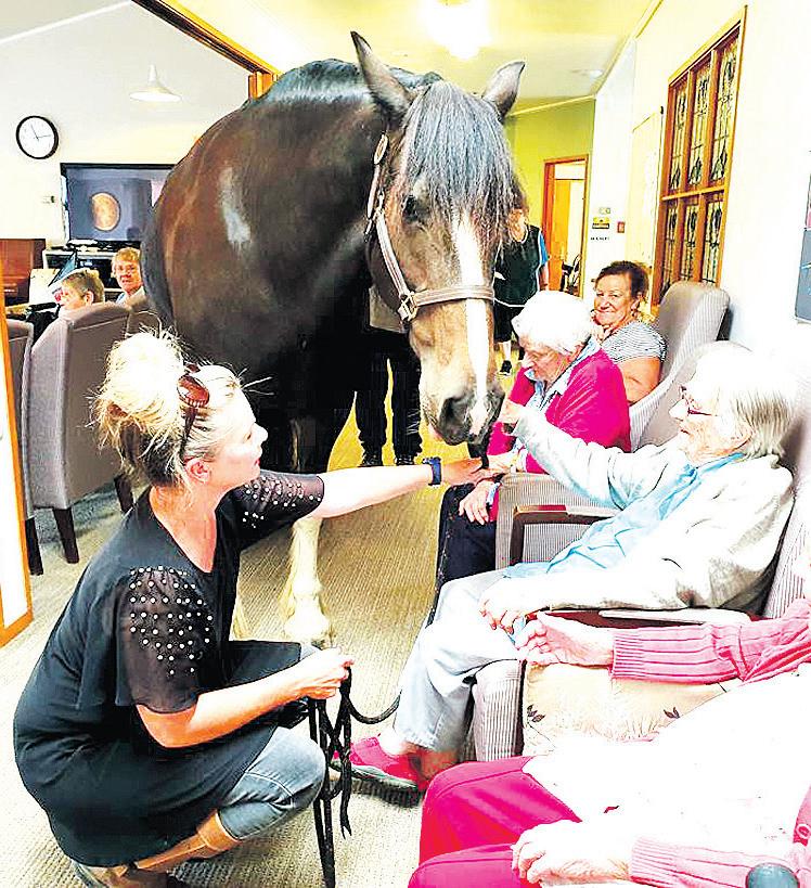 Sally and Tyson, a Clydesdale cross, visit rest homes and hospitals giving their time to others and bringing joy to the elderly, those who are dying and those suffering from depression, loneliness and mental health.