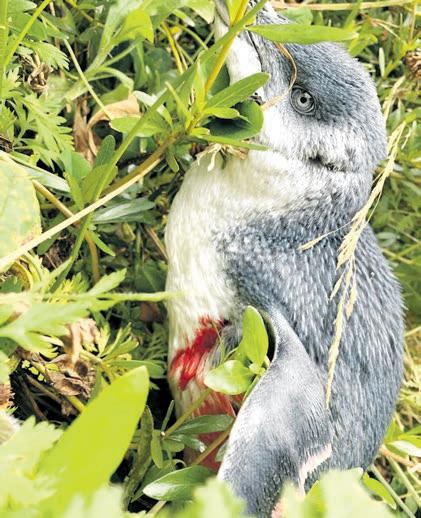 Above and bottom left: This Little Blue Penguin died of the injuries sustained from a dog bite. Below: Signs encourage beach goers to keep their dogs on a lead due to the Little Blue Penguin habitat.