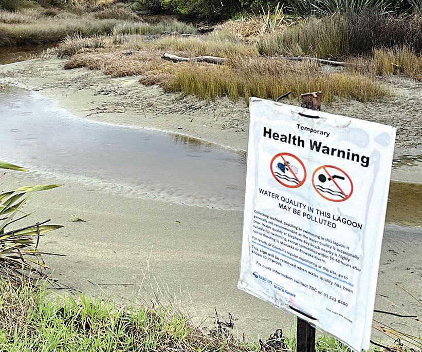 Sampling of swimming sites around Tasman during the 2023-24 season found that the proportion of the bacteria at the Stephens Bay Lagoon exceeded alarm guidance 54 per cent of the time. This far exceeds second place Rototai at 20 per cent and third’s Port Riuwaka at the mouth of the Riuwaka River at 17 per cent.