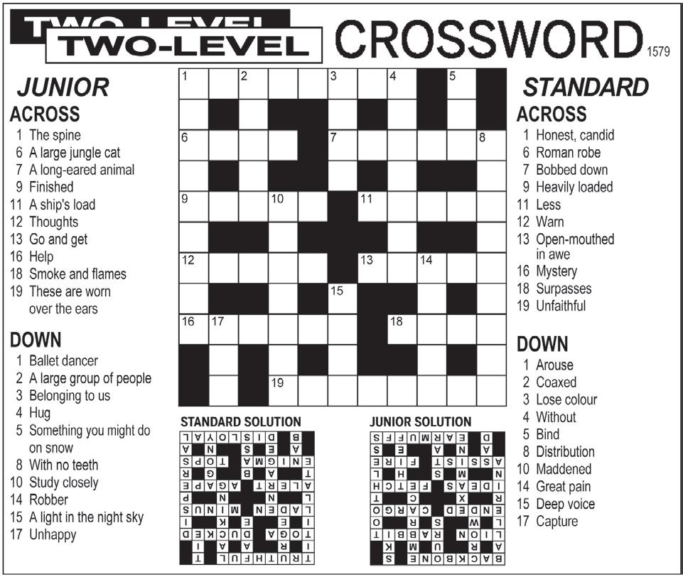 2793 564 18 6142 873 95 3851 496 72 8 2 7 9 6 3 5 4 1 9567 148 23 1438 259 67 5 6 1 4 7 8 2 3 9 4325 917 86 7986 321 54 for sale FOR S ALE Leather Jacket (mens) $100. Tan Suit (mens) $50. Light Trailer $250. Ph 528 9593. AMASL TINKERBELL BNMIFF SAUNAOFTEN TPSSR GRASSHOPPER OLYAO MENDSTOKYO SOEUNT EXERCISING ESHEN ECPTD ADULTERATE EGARLP NEEDYUNCLE CRWEN OBLITERATED FTREM PASTEASHEN AEVLYT STEREOTYPE SRNOE 131412 15 181617 19 No.1578 SOLNS 13 Go and get 16 Help 18 Smoke and flames 19 These are worn over the ears DOWN 1 Ballet dancer 2 A large group of people 3 Belonging to us 4 Hug 5 Something you might do on snow 8 With no teeth 10 Study closely 14 Robber 15 A light in the night sky 17 Unhappy 13 Open-mouthed in awe 16 Mystery 18 Surpasses 19 Unfaithful DOWN 1 Arouse 2 Coaxed 3 Lose colour 4 Without 5 Bind 8 Distribution 10 Maddened 14 Great pain 15 Deep voice 17 Capture CompanyPuzzleTheCopyright© ehT elzzuP ynapmoC 8 Pohutukawa Cres, Raumati Beach 6010, New Zealand Tel: 04-905 2238 Fax: 04-905 2238 Email: info@ThePuzzleCompany.co.nz Website: www.ThePuzzleCompany.co.nz 1580 BACKBONES ARUMK LIONRABBIT LWSRO ENDEDCARGO RXCT IDEASFETCH NMSHL ASSISTFIRE ANAES DEARMUFFS TRUTHFULT IRAAI TOGADUCKED IEEKI LADENMINUS LNNP ALERTAGAPE TABGR ENIGMATOPS AESNA BDISLOYAL 1234 56 78 910 11 12131415 16 1718 19 CROSSWORDNo. TL1580 No.1579 SOLNS JUNIOR ACROSS 1 Young people 7 Without any decoration 8 This is needed for swimming 9 Opposite of winners 10 Let fall 12 An animal with horns 14 Go on a trip 17 Footwear 18 Sound that is loud or unpleasant 19 The people in Japan DOWN 1 Applauds 2 Take no notice of 3 The break of day 4 Go in 5 Say you are sorry 6 Spinning aeroplane part 11 Medal for third 13 Smell 15 A singer's instrument 16 The largest continent STANDARD ACROSS 1 Called 7 Steering straps 8 Glossy fabric 9 In layers 10 As well 12 Tidings 14 Flourish 17 Messenger 18 Reinforcing strut 19 Successful student DOWN 1 Grab hold of 2 Become proficient in 3 Expel 4 Praise 5 Feigned 6 Exposed 11 Extreme irrational fear 13 Vacillate 15 Silly 16 Watched STANDARDi SOLUTION JUNIORi SOLUTION AMASL TINKERBELL BNMIFF SAUNAOFTEN TPSSR GRASSHOPPER OLYAO MENDSTOKYO SOEUNT EXERCISING ESHEN DTPCE ADULTERATE PLRAGE UNCLENEEDY NEWRC OBLITERATED ERTFM ASHENPASTE TYLVEA STEREOTYPE EONRS No.1578 SOLNS 3 Belonging to us 4 Hug 5 Something you might do on snow 8 With no teeth 10 Study closely 14 Robber 15 A light in the night sky 17 Unhappy 4 Without 5 Bind 8 Distribution 10 Maddened 14 Great pain 15 Deep voice 17 Capture CompanyPuzzleTheCopyright© ehT elzzuP moC 8 Pohutukawa Cres, Raumati Beach 6010, New Zealand Tel: 04-905 2238 Email: info@ThePuzzleCompany.co.nz Website: www.ThePuzzleCompany.co.nz 1580 BACKBONES ARUMK LIONRABBIT LWSRO ENDEDCARGO RXCT IDEASFETCH NMSHL ASSISTFIRE ANAES DEARMUFFS TRUTHFULT IRAAI TOGADUCKED IEEKI LADENMINUS LNNP ALERTAGAPE TABGR ENIGMATOPS AESNA BDISLOYAL 1234 5 78 910 11 12131415 16 1718 19 CROSSWORDNo. TL1580 No.1579 SOLNS JUNIOR ACROSS 1 Young people 7 Without any decoration 8 This is needed for swimming 9 Opposite of winners 10 Let fall 12 An animal with horns 14 Go on a trip 17 Footwear 18 Sound that is loud or unpleasant 19 The people in Japan DOWN 1 Applauds 2 Take no notice of 3 The break of day 4 Go in 5 Say you are sorry 6 Spinning aeroplane part 11 Medal for third 13 Smell 15 A singer's instrument 16 The largest continent STANDARD ACROSS 1 Called 7 Steering straps 8 Glossy fabric 9 In layers 10 As well 12 Tidings 14 Flourish 17 Messenger 18 Reinforcing strut 19 Successful student DOWN 1 Grab hold of 2 Become proficient in 3 Expel 4 Praise 5 Feigned 6 Exposed 11 Extreme irrational fear 13 Vacillate 15 Silly 16 Watched STANDARDi SOLUTION JUNIORi SOLUTION