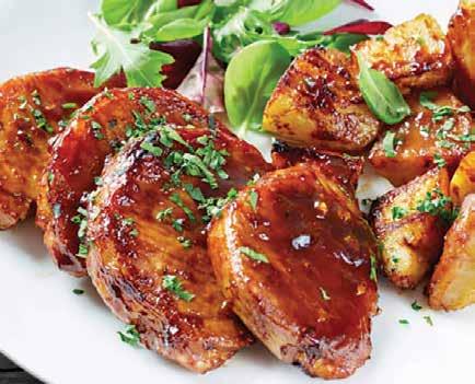 Place chops in a shallow baking dish. In a small bowl, stir together the remaining ingredients and pour over the chops. Cover and bake for 30 minutes, turning with 10 minutes to go.
