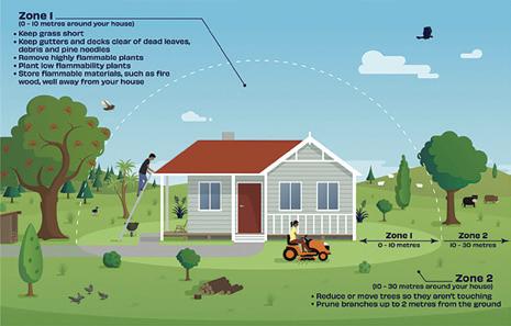 Choosing less flammable plants can starve a wildfire of fuel reducing the fire intensity, and help protect your home and buildings from intense heat. Avoid using pea straw and bark mulch in gardens especially around the home and other buildings as these mulches are easily ignited and can help a wild fire to spread.