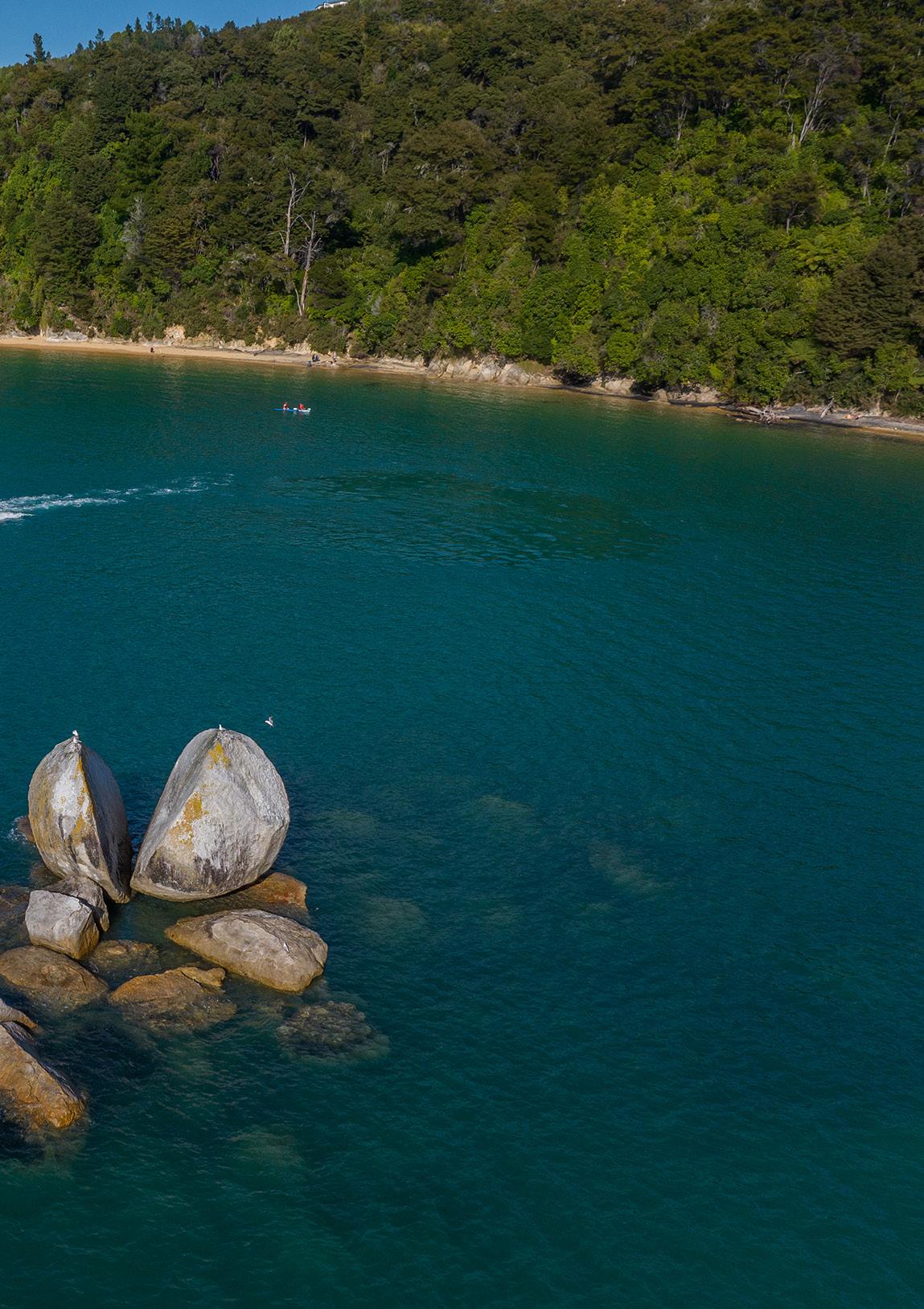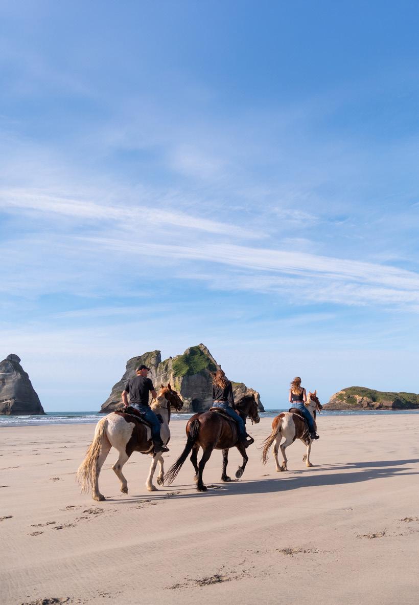 is well worth exploring, especially if you’re visiting as a family, Early birds can also head to Tata Beach before sunrise to watch hundreds of spotted shags flying in from their roosts around the Tata Islands as part of their morning ritual. Golden Bay is highly connected to two of the region’s three spectacular national parks, perhaps the reason for its tagline, ‘Heart of the Parks’, and for the stunning golden sands that line the bay’s eastern side. From Tākaka, you can easily access the Abel Tasman National Park with Golden Bay Kayaks, or enter the Kahurangi National Park and the Heaphy Track, all offering a wealth of sightseeing and adventure activities to top off your visit.