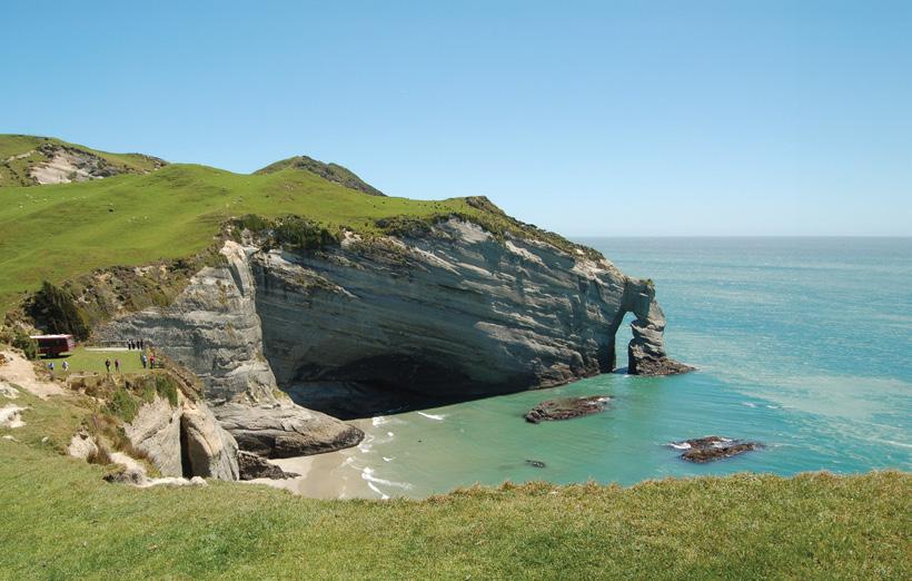 Wharariki Beach rivals the world’s wonders with its rugged coastline, arches, caves, and sand dunes. Located on the wild northwest of the South Island, it’s home to playful seal pups. A 20-minute walk through farmland, manuka groves, and coastal forest brings you to the beach. For more adventure, take the Puponga Hilltop Track to see Cape Farewell and the Pillar Point Lighthouse.
