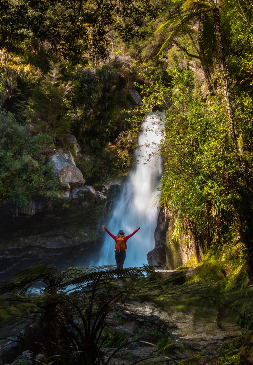 Drive 30 min inland from Collingwood towards the Heaphy Track. Park on the side of the road, cross a fence stile or two, and within minutes you are at the cascading waterfall and its inviting swimming hole. Just down from the falls is the Aorere River, with its deep waters and interesting rock formations forming a stunning gorge.