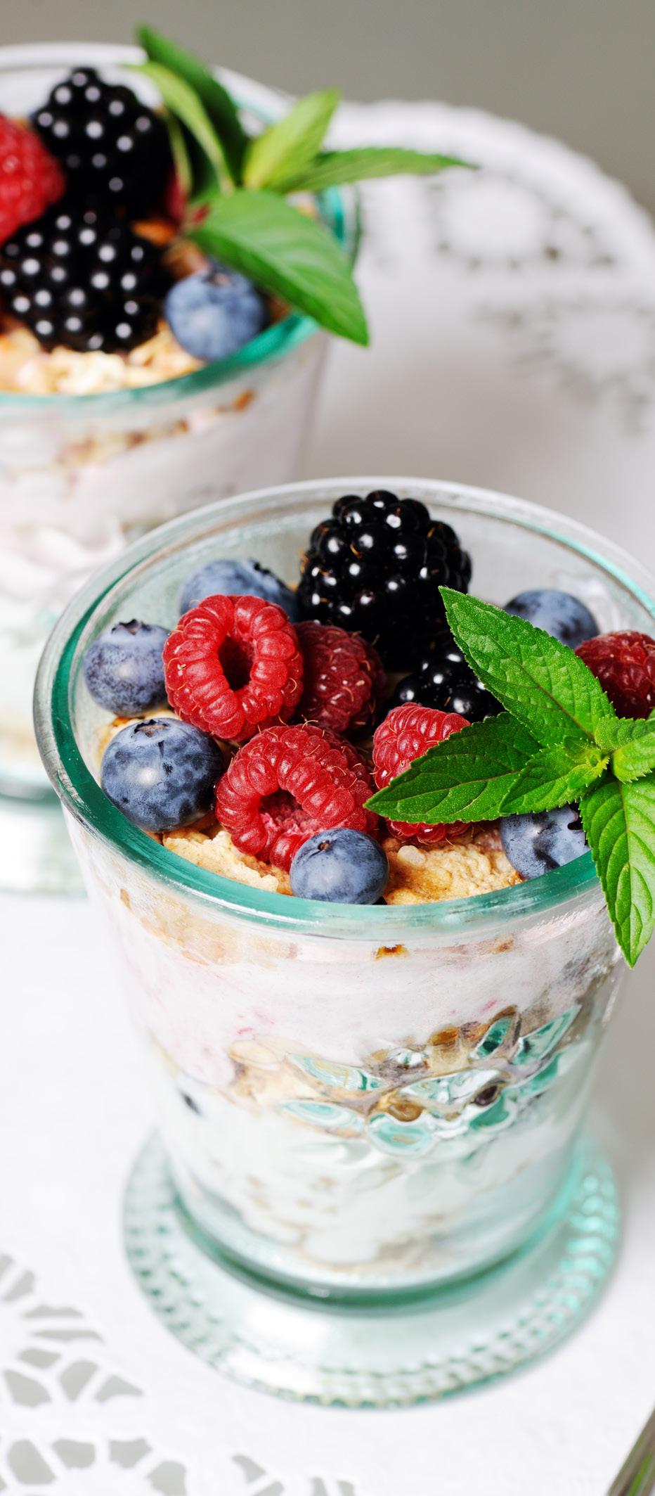 • Yogurt parfaits with berry compote and local honey GF
