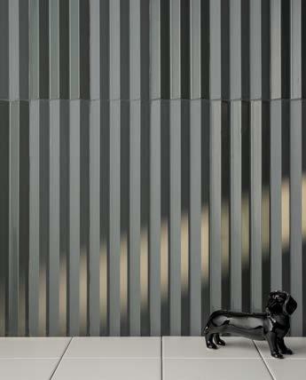 Solis is a dimensional wall tile in a palette of neutrals and earth tones. Its ribbed and fluted textures allow for wall-cladding designs.