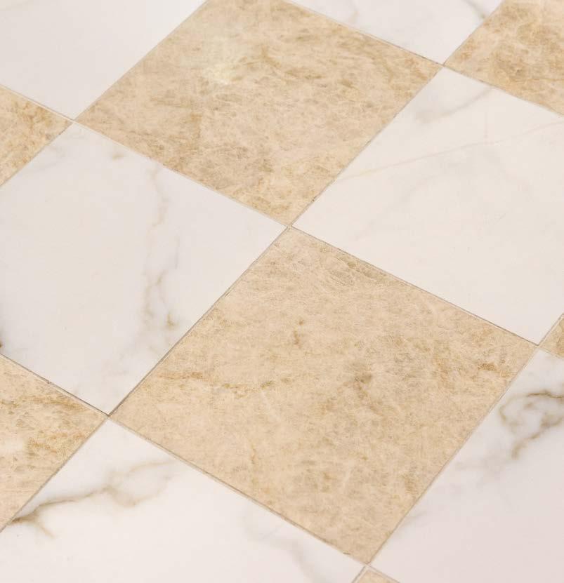 Versailles offers classic checkerboard flooring with the allure of marble in an exquisite palette of neutrals.
