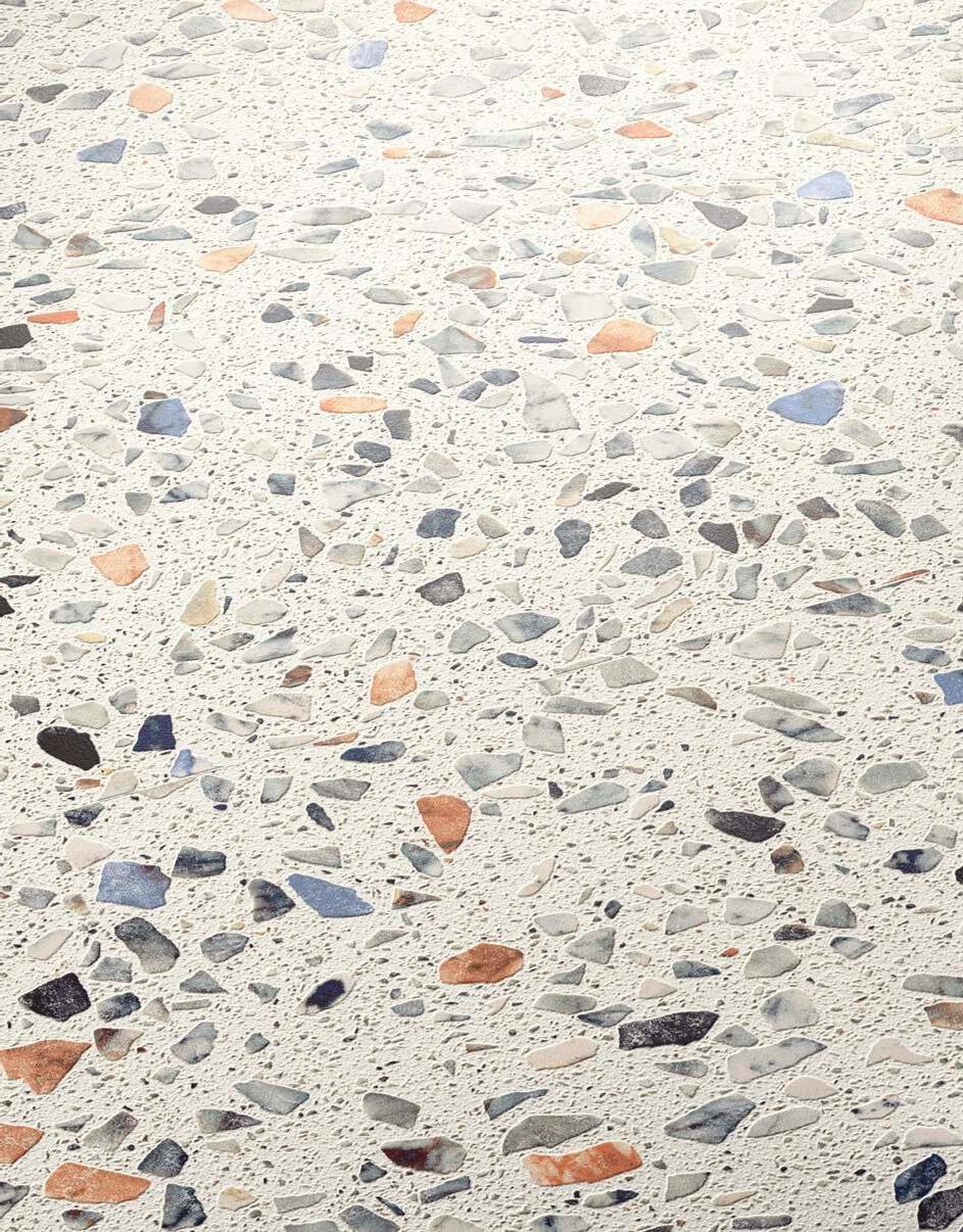 Torcello is a modernized classic Italian terrazzo. Each piece features a soft, brushed finish that enhances the natural beauty of marble fragments.