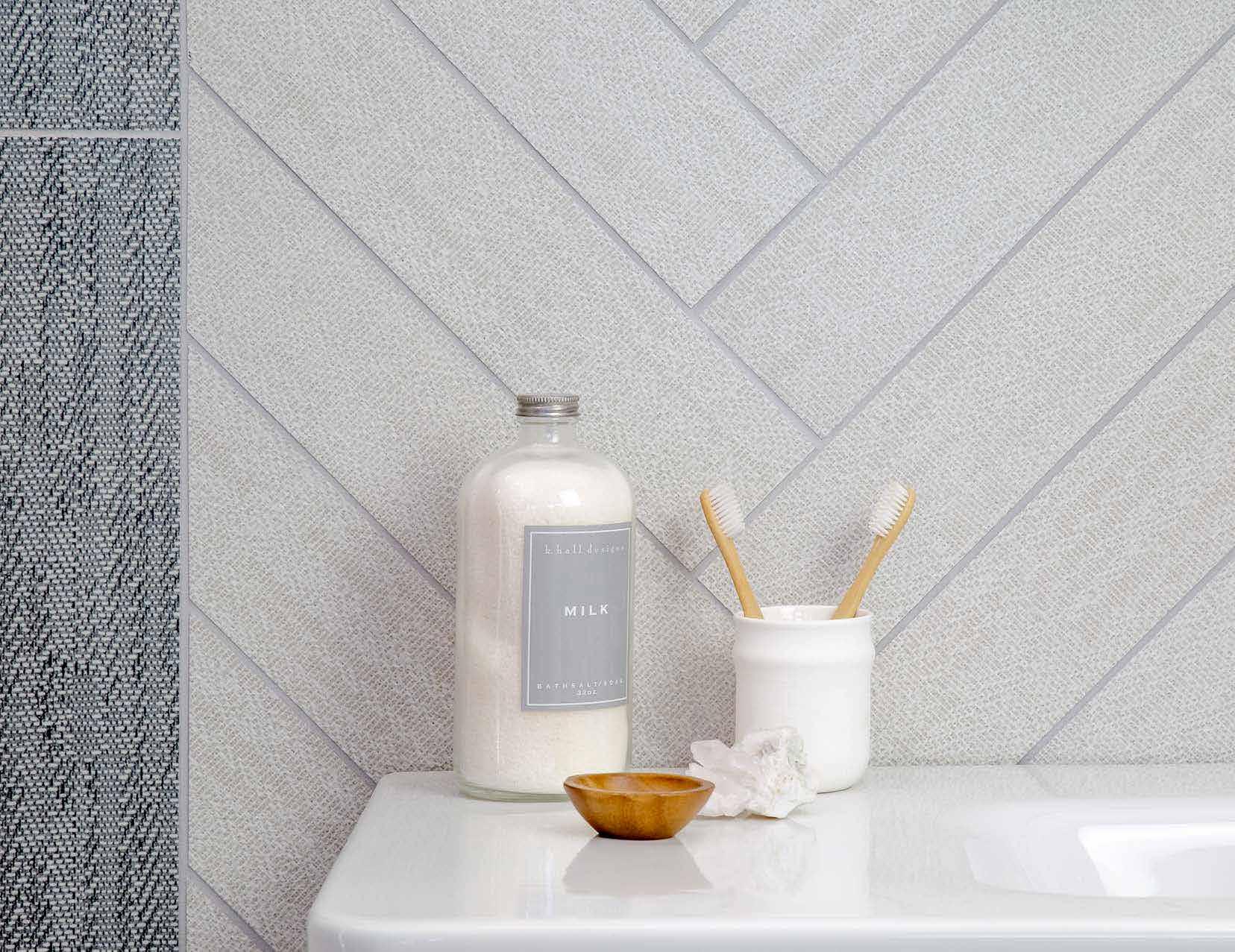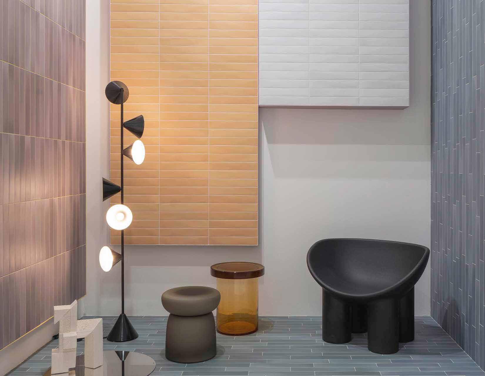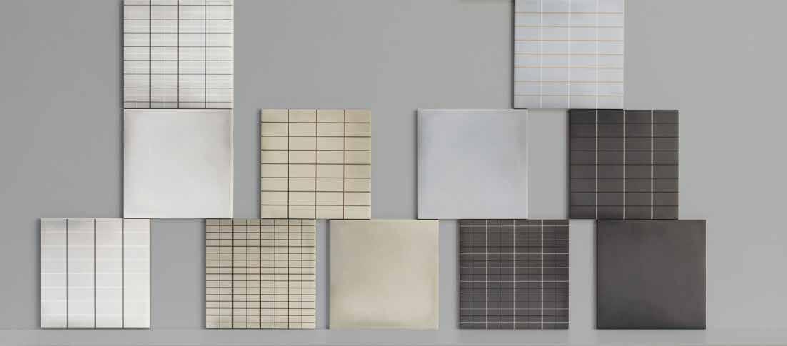 Fusion comes in a mixture of matte and glossy finishes in solid through-body colors. The small dimension and different finishes are perfect to create nice patterns and can match various approaches of design.