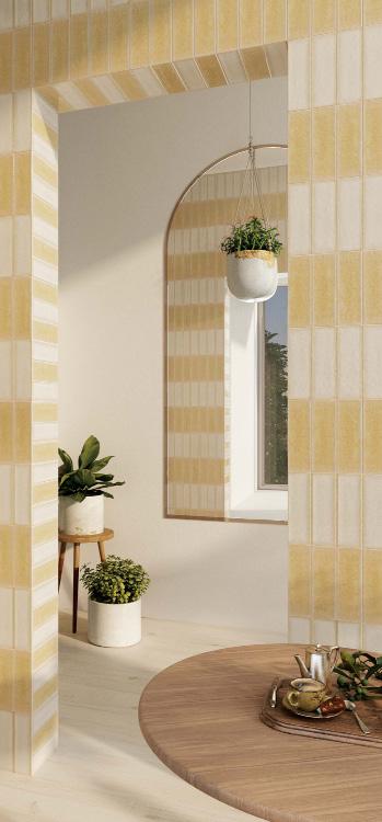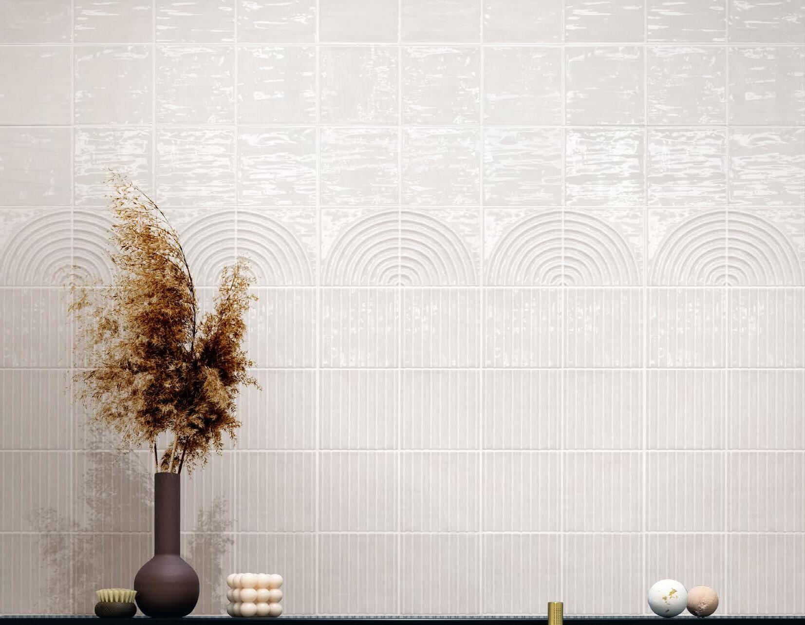 Intoducing Yasmine, the majestic Large-Scale Feature Tile, meticulously crafted to become the heart of any chic urban lobby or skyhigh restaurant. This architectural marvel seamlessly integrates with any indoor or outdoor setting, making it a perfect complement to a beach abode as well. Bathed in natural light, our feature tile exhibits a unique fusion of plaster aesthetics and Zellige design, effortlessly guiding your gaze in a continuous journey, drawing attention upwards and offering a mesmerizing and immersive visual spectacle. Ideal for designers and architects looking for innovative solutions, Yasmine is an excellent tool to enhance spatial narratives.