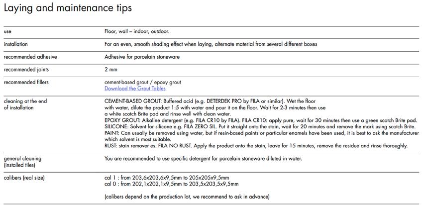 Yasmine Porcelain - Technical Information