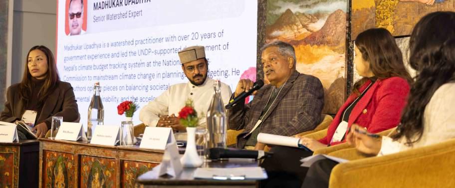 Sonia Awale is an editor at the Nepali Times with extensive experience covering environmental issues in Nepal. Awale framed the panel by pushing participants to look beyond the default tendency to attribute every disaster to climate change. She asked whether inadequate reconstruction, poor planning, and the neglect of indigenous knowledge are equally to blame, and how governments and civil society can better collaborate to manage climate risks. Her guiding questions probed whether climate change is, at its core, a water crisis; how infrastructure planning can move beyond reliance on historical data to prepare for an uncertain future; what concrete approaches organizations like Rahul’s are taking on the ground; and, given Nepal’s status as a disaster hotspot, whether the country is truly becoming more prepared, including how anticipatory action is being institutionalized within national disaster risk management systems.