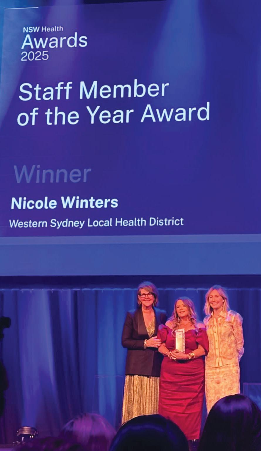 AHUGE round of applause for the STATEWIDE winner of the Staff Member of the Year Award at the NSW Health Awards 2025, Nicole Winters, from Western Sydney Local Health District.