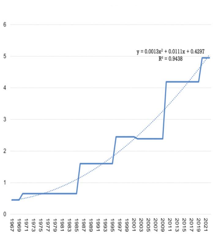If we look at the M2 money supply of the US, it’s been increasing at around 7.1 percent per annum since 1967. incredibly 40 percent of all USD ever in history were printed in 2021.