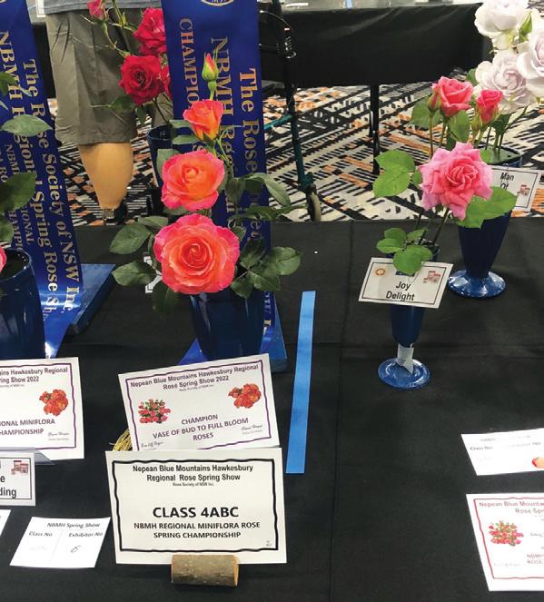 in), Glynis and Doug’s exhibit of the Australian-bred miniflora rose ‘Joyce Abounding’ won the Champion Bud to Full Bloom, Champion Miniflora and the Dr Bruce Chapman Australian Unit of the Show.
