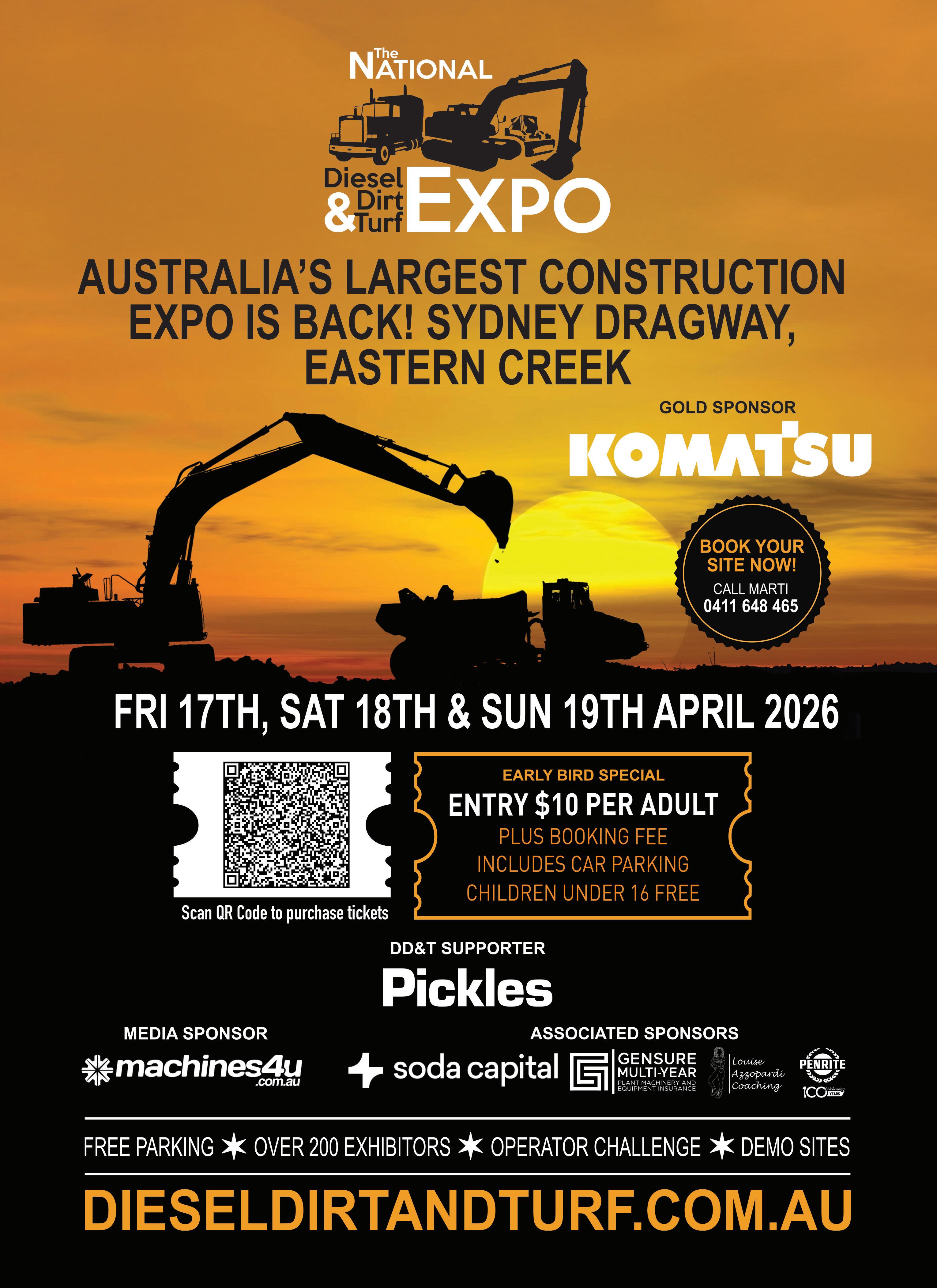 Komatsu Australia is again the Gold Sponsor of the Expo, supported by Pickles, Machines4U, Gensure, Soda Capital, Penrite and Louise Azzopardi Coaching.
