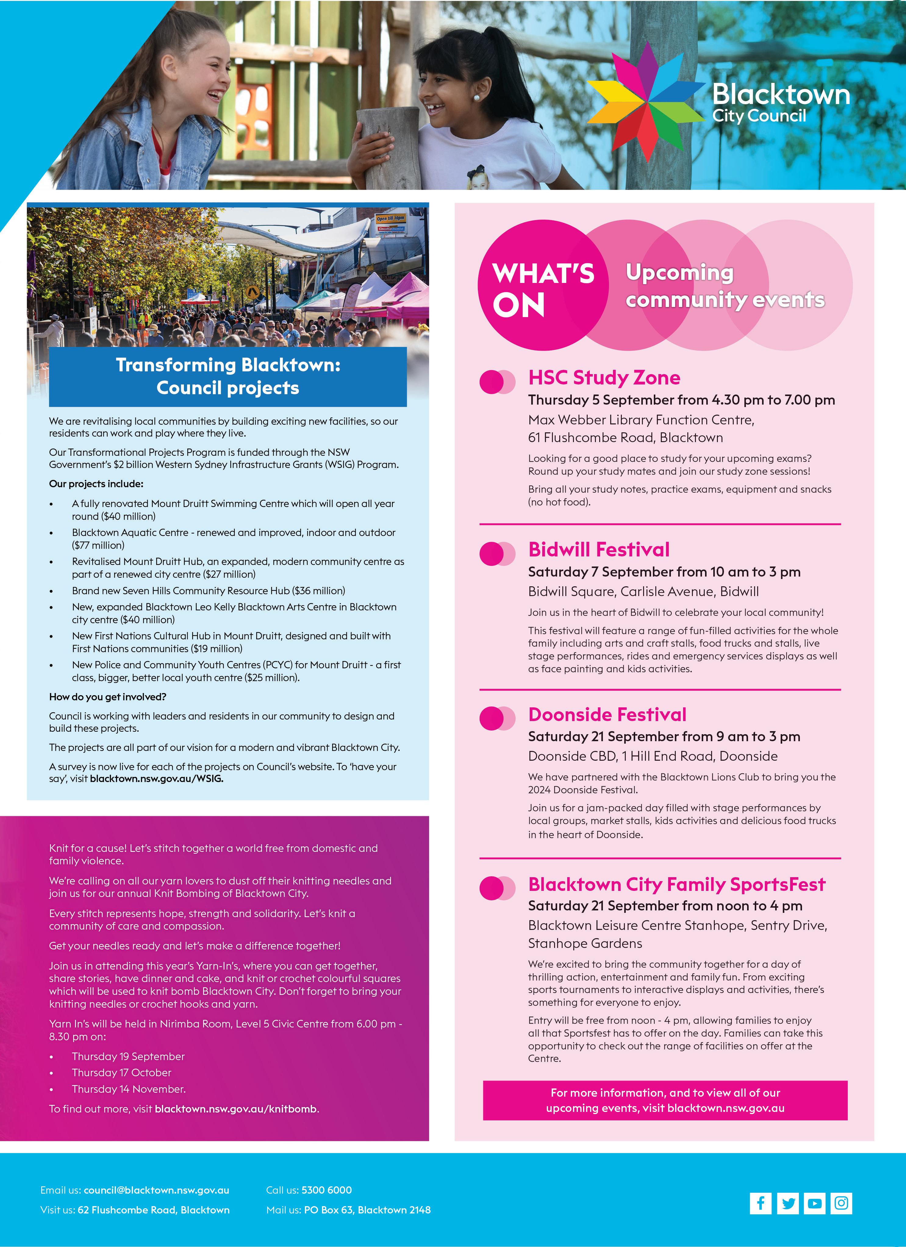 For more information about what’s on offer at the library, please visit libraries.blacktown.nsw.gov.au or follow @blacktowncitylibraries on Facebook and Instagram.