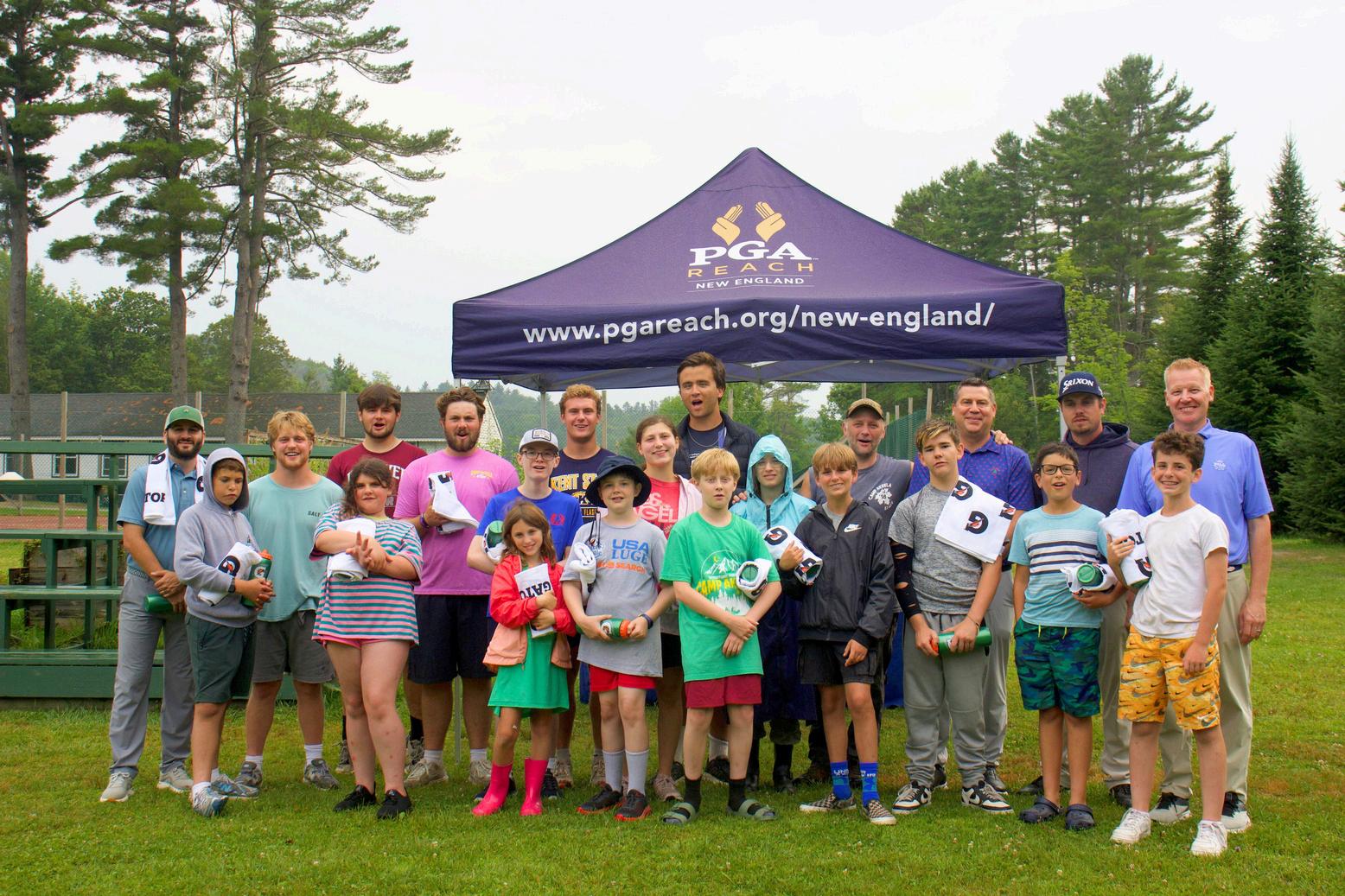 PGAREACHNewEngland,inacollaborativeeffortwith CampsacrossNewEnglandisexcitedtohostCamp REACH NEPGAProfessionalscontinuetogrowthe sportinalldemographicsbybringinggolftocampers battlinglifethreatingillnesses.Weofferonsite instructionthroughtheuseofinflatableanimals, SNAGequipment,BirdieBallandmore!