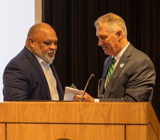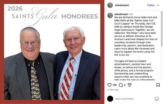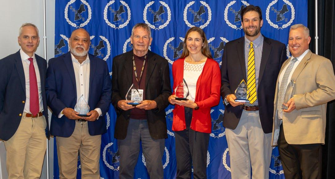ON THE COVER (from left): incoming NEPSAC president Tim Joncas (Westminster School), Souders Award recipient Bryant McBride, Distinguished Service Award recipient Alan McCoy, Souders Award recipient Gevvie Stone, Geoff Barlow (Avon Old Farms), accepting John Gardner’s Distinguished Service Award, outgoing NEPSAC president Ryan Frost (Cardigan Mountain School).