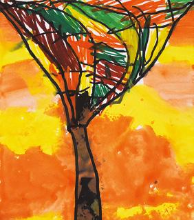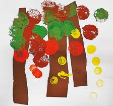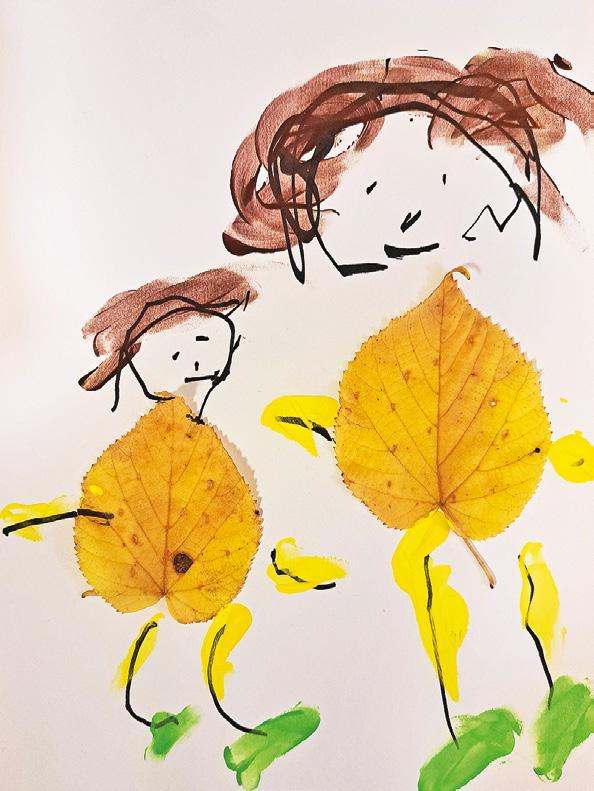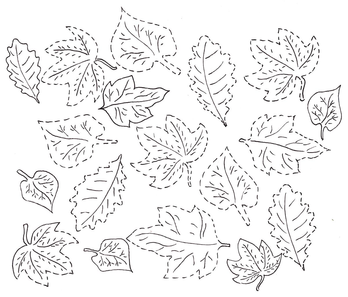 Ősszel a fákról lehullanak a levelek. Ilyenkor a fák körül színes szőnyeg borítja a talajt. Rajzold körbe a lehullott faleveleket a szaggatott vonal mentén, majd az egyforma leveleket színezd ugyanolyan színűre!
