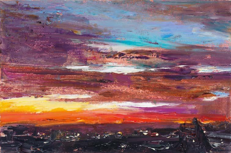 Αυτό που βλέπω σήμερα όμως είναι κάτι εντελώς διαφορετικό. Ενώ οι ουρανοί εναλλάσσονται και αναγνωρίζω εικόνες από τη γειτονιά μου, ουρανούς που έχω ξαναδεί σε τόσους περιπάτους, σύντομα καταλαβαίνω ότι όλα αυτά δεν έχουν καμία σχέση μ' εμένα και ίσως τελικά με κανέναν άλλον, διότι τώρα βρίσκομαι μπροστά σε ένα έργο βιωματικό, απόλυτα προσωπικό, σχεδόν αυτοπροσωπογραφικό. Μέσα από συρραμμένες στιγμές μιας διαδρομής, όπου ο ζωγράφος αποφάσισε να στρέψει το βλέμμα προς τα πάνω, τα έργα αυτά σίγουρα δεν αποτελούν μια