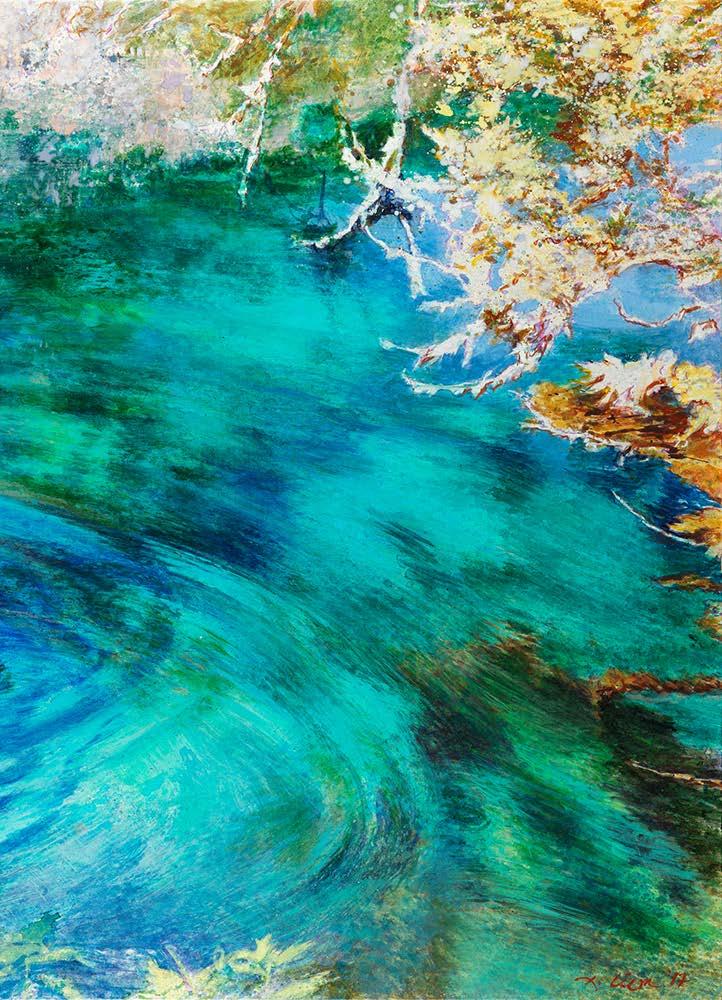 I am not interested in ‘depicting’ fleeting phenomena, but in the relation between the texture and the fluidity; I am interested in the infinite, completely abstract textures that turn into matter; in the fragmented form of the bottom under the translucent fluidity of the surface; in the vibrant life underground; in the contrasts between solid and fluid, dry and wet; in the magical way in which light reveals different textures.