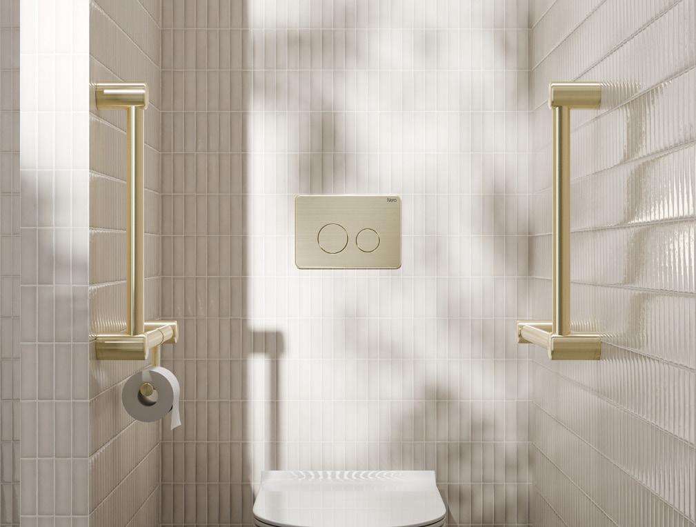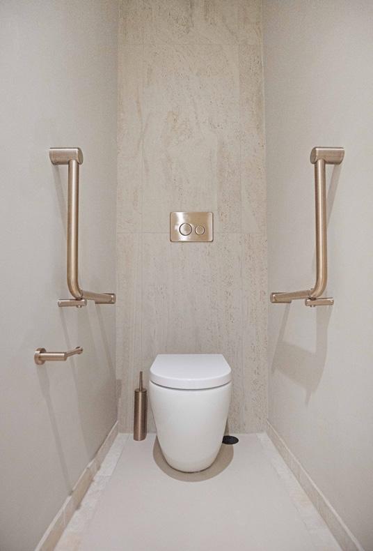 To bring this vision to life, Lanson Place selected Nero’s Mecca Care collection in a warm, contemporary Brushed Gold finish. The fittings not only harmonise beautifully with the interior’s elegant aesthetic but also provide a high standard of accessible functionality. Balancing practicality with design excellence, the collection truly reflects the idea that “care can also be beautiful.”