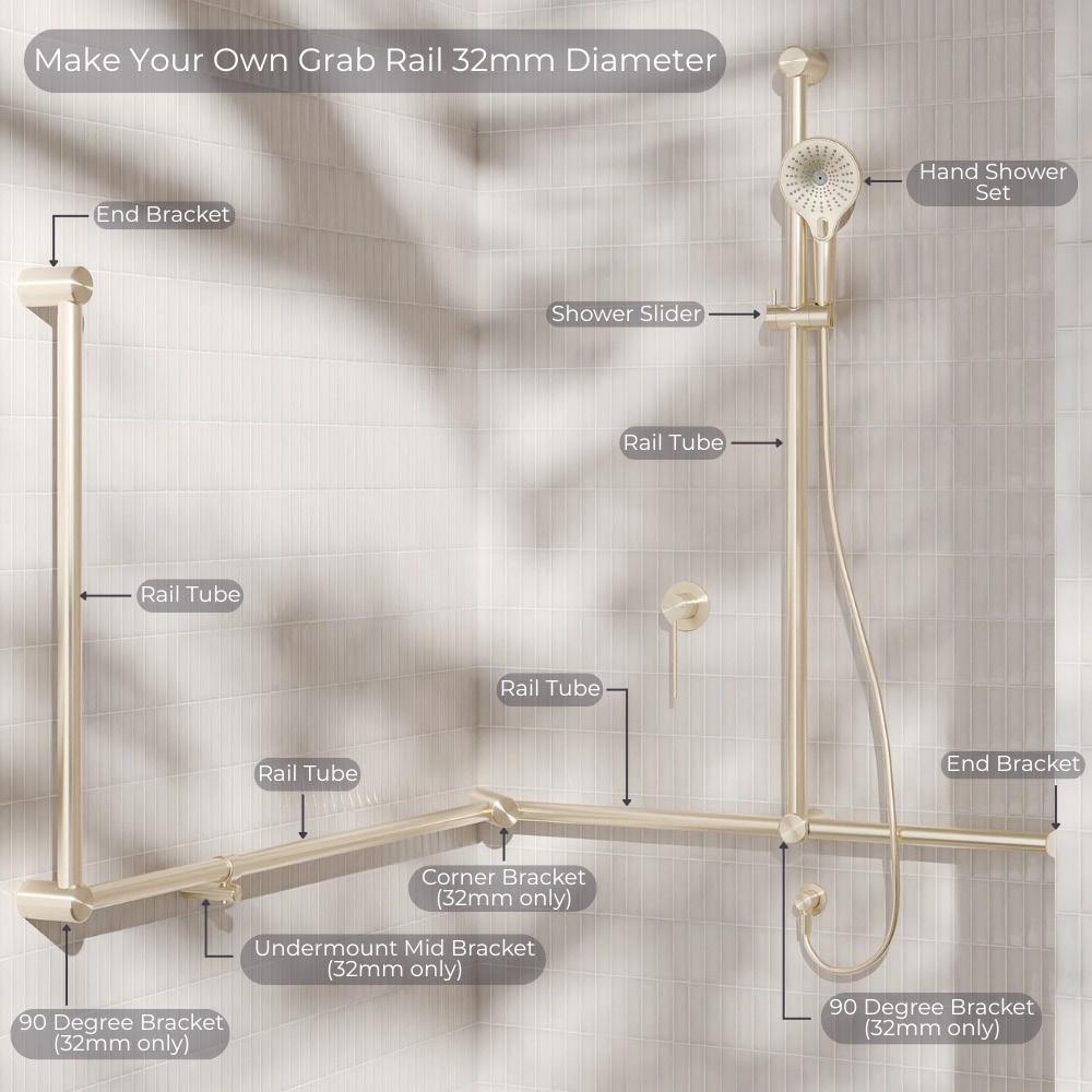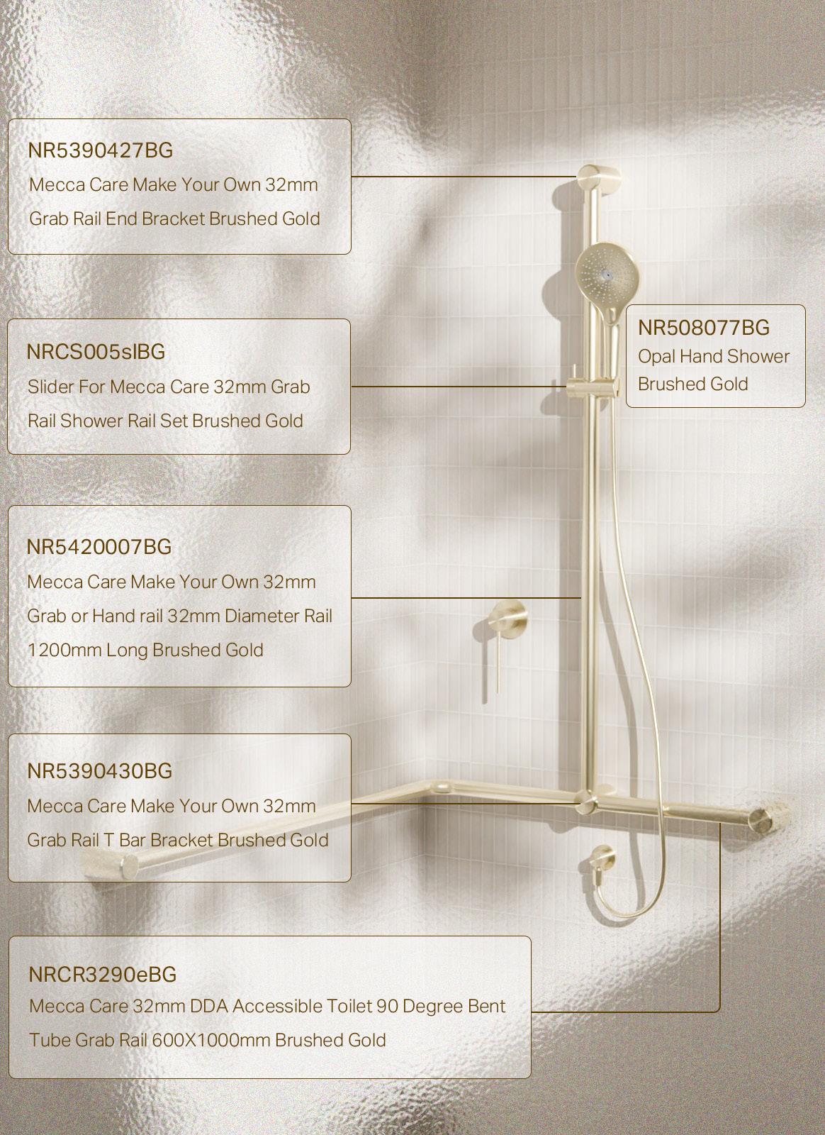Now, with the launch of our “Make Your Own Grab Rails” initiative, Mecca Care offers even greater flexibility. Select from a wide range of components to create tailored grab rail configurations that suit your unique needs, layout, and preferences.