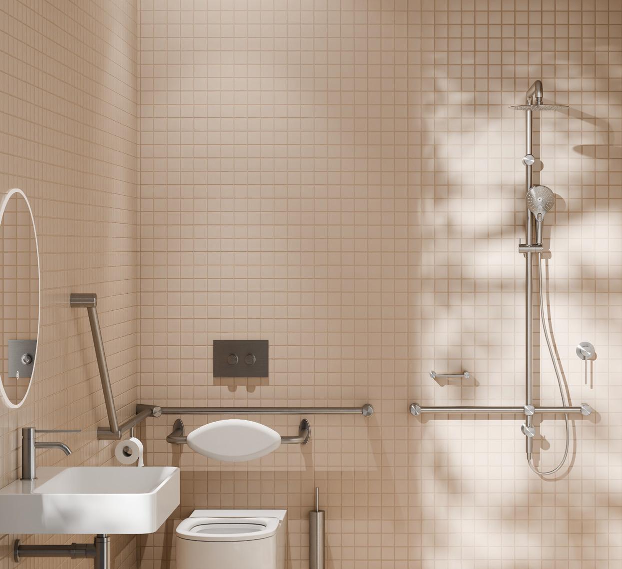 The Mecca Care provides full support for disability care in a variety of environments. The range includes two product lines, DDA 32mm and Assisted Living 25mm, catering to commercial and residential settings respectively.