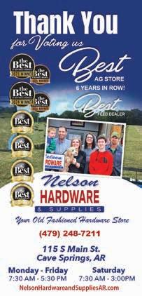 Nelson Hardware & Supplies 115 S Main St Cave Springs • 479-248-7211 nelsonhardwareandsuppliesar.com