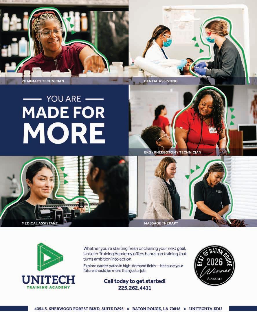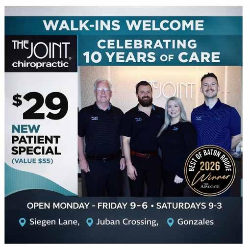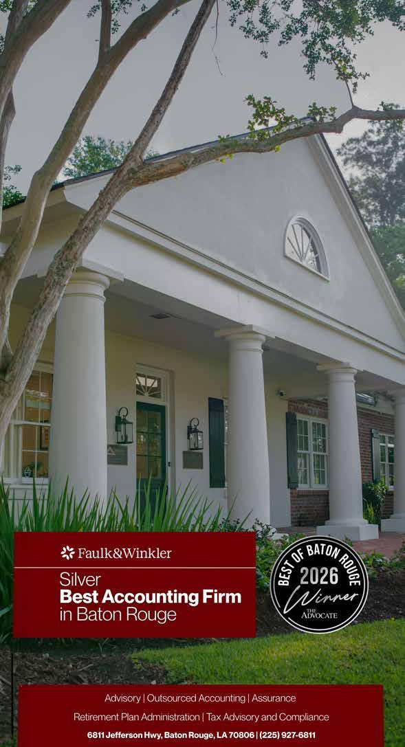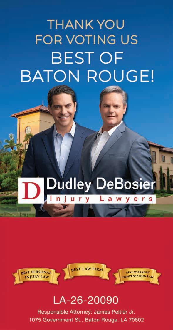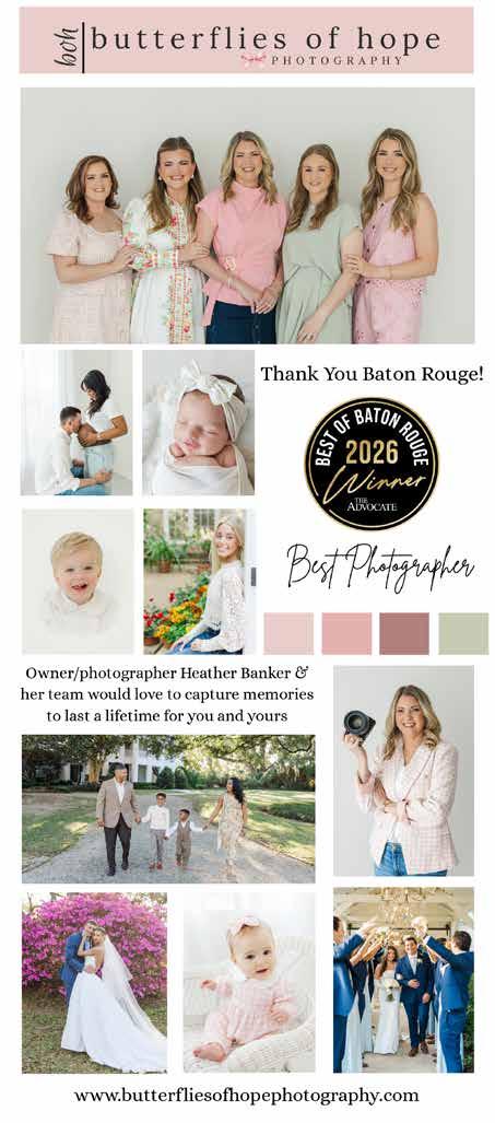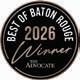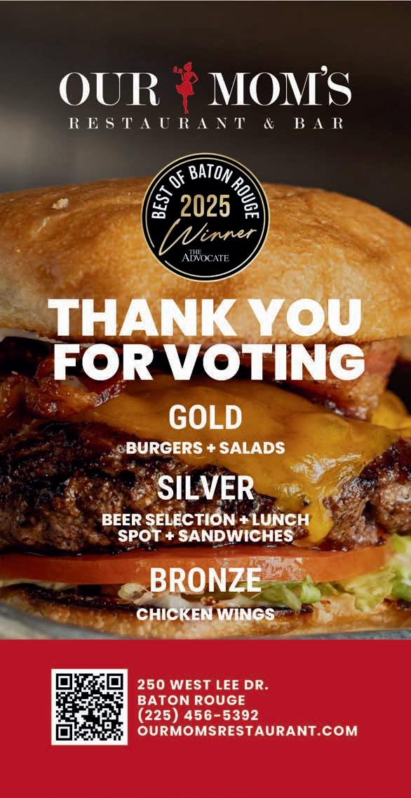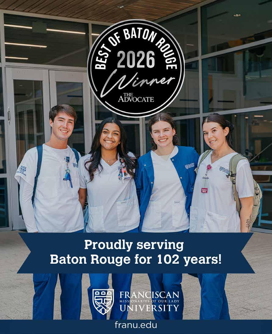 ©2026 The Advocate & NERUS Strategies, LLC. This is not a product of The Advocate newsroom. Best of Baton Rouge is powered by BestofPrograms.com and OptimumbyNERUS. com, part of nerus.net. Concepts and technology ©2026 NERUS Strategies. The reproduction by any means of this publication without express permission is prohibited. The use of the unique Best of Baton Rouge logo is by license only. Best of Baton Rouge is published as an advertising feature and is distributed to the subscribers of the The Advocate along with other select locations. To be included in future publications, visit VoteBestofBatonRouge.com or call 503-584-1627.