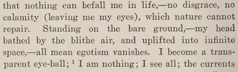 Nature: Emerson becomes an “Eye” that “repairs” theself.