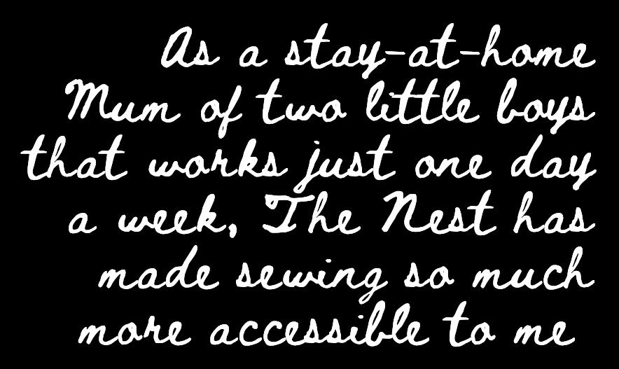 The Nest’s The Nest’s ever-changing variety ever-changing constantly sparks constantly sparks inspiration... I always inspiration... I always leave with a basket leave with a basket full of beautiful materials and a head full of new and a head full of new sewing projects sewing projects