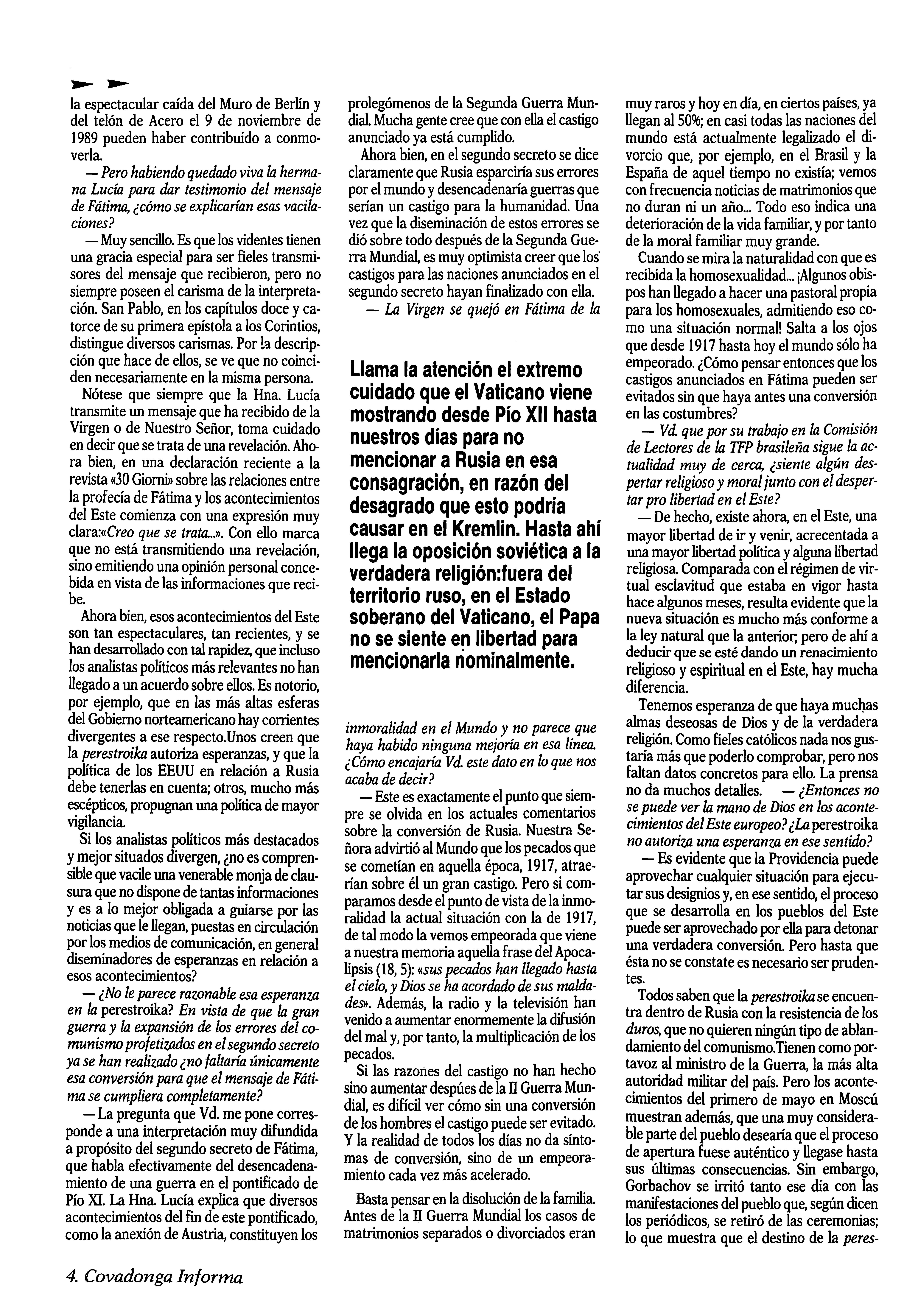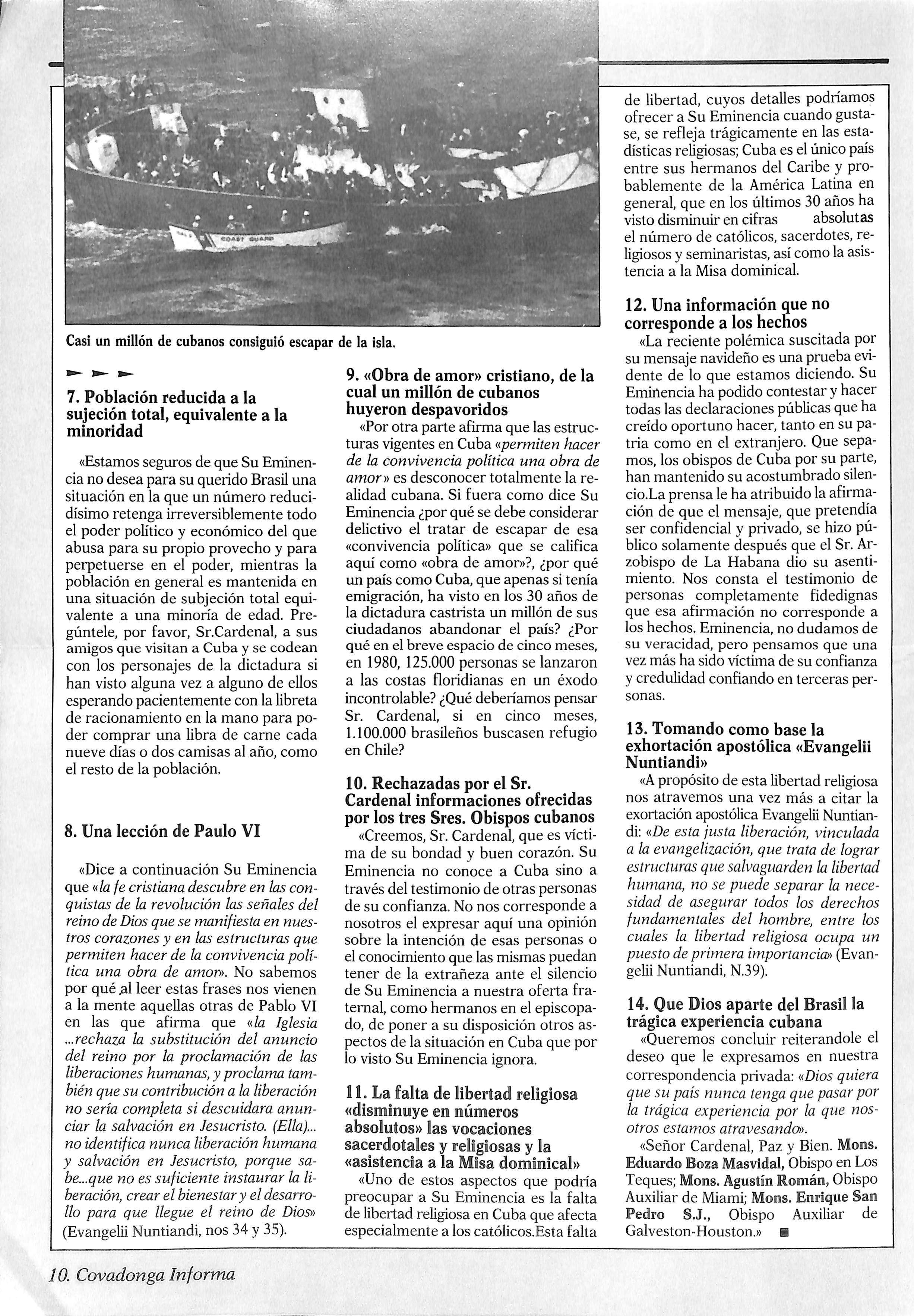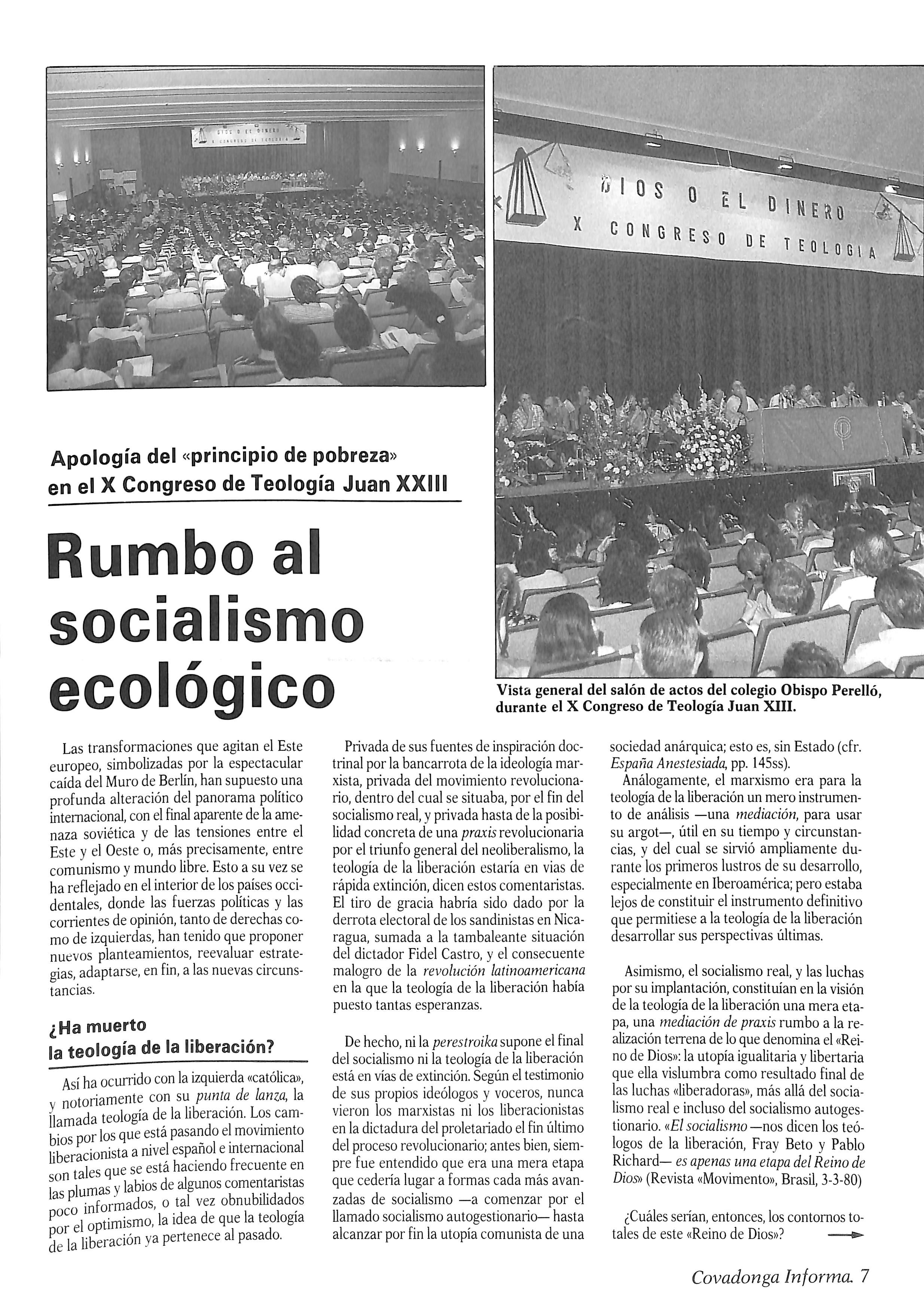 Desde el momento en que el Cardenal Ar zobispo de Sao Paulo,Brasil, Monseñor Pau lo Evaristo Ams, ensalza al socialismo cu bano como «un ejemplo de justicia social), en la que cree vislumbrar «señales delReino de Dios»,la «izquierda católica» iberoameri cana podrá alegar este antecedente para pro pugnar la implantación en sus países de «mo delos» semejantes. No es por casualidad que Fidel Castro manifestó durante su reciente estancia en Brasil que «mudanzas políticas» favorables a la Revolución podrían ocurrir en el continente, «tal vez más rápido de lo que pensamos))(Cfr. Granma,8-4-90).